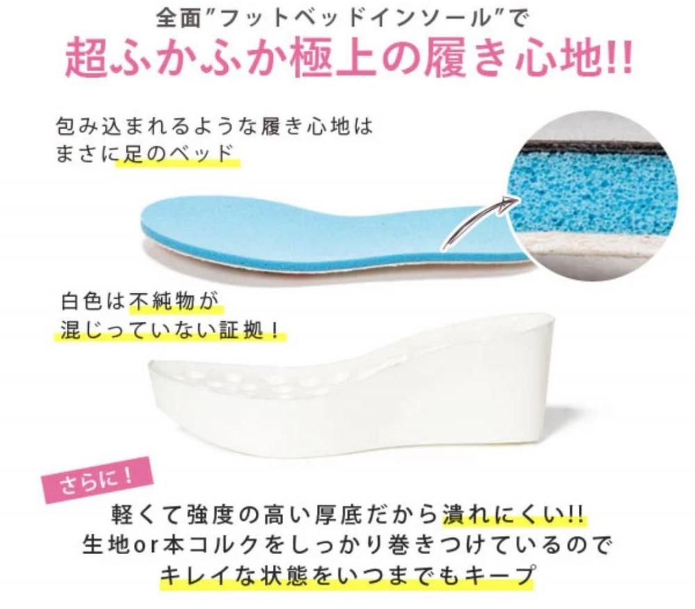 足を包み込んでくれるふかふかのフッドベッド仕様で履き心地も快適。