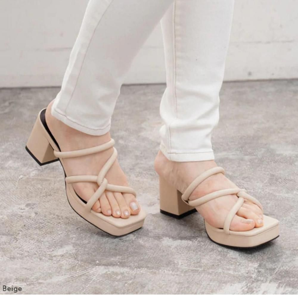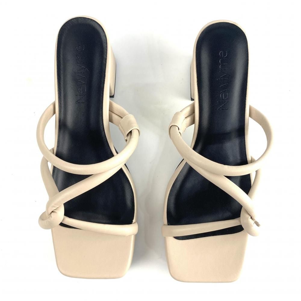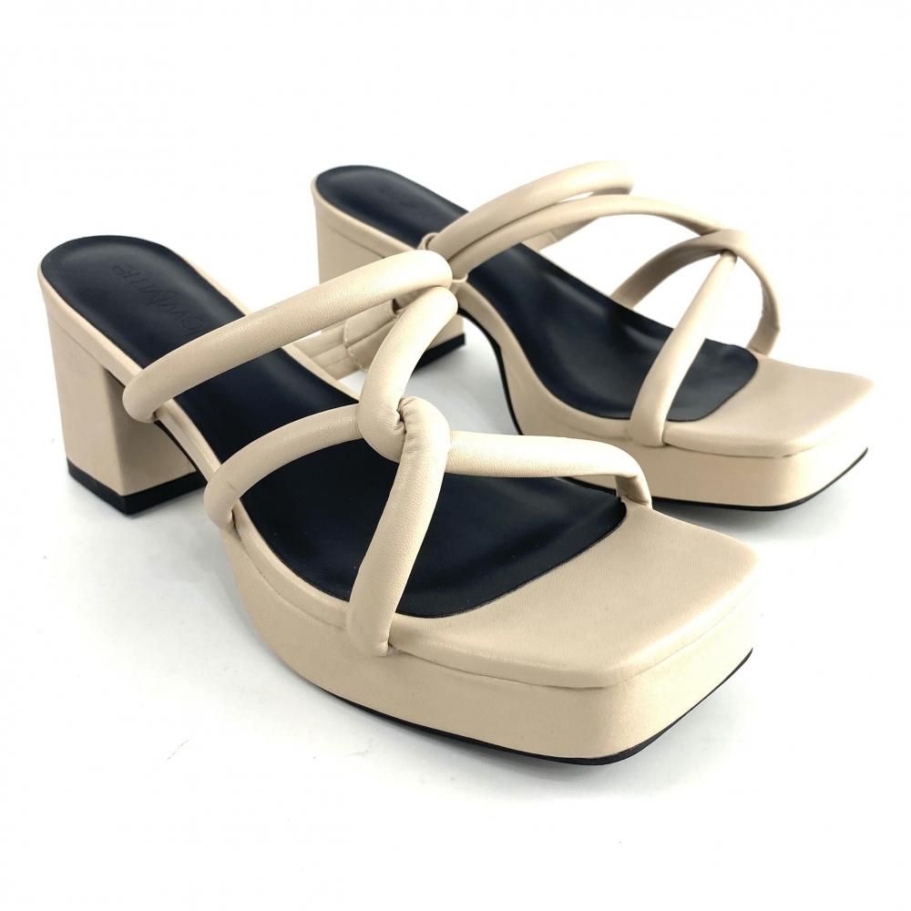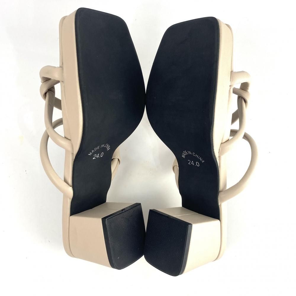 スクエアトゥツイストストラップサンダル ベージュ 24.5cm B1954
