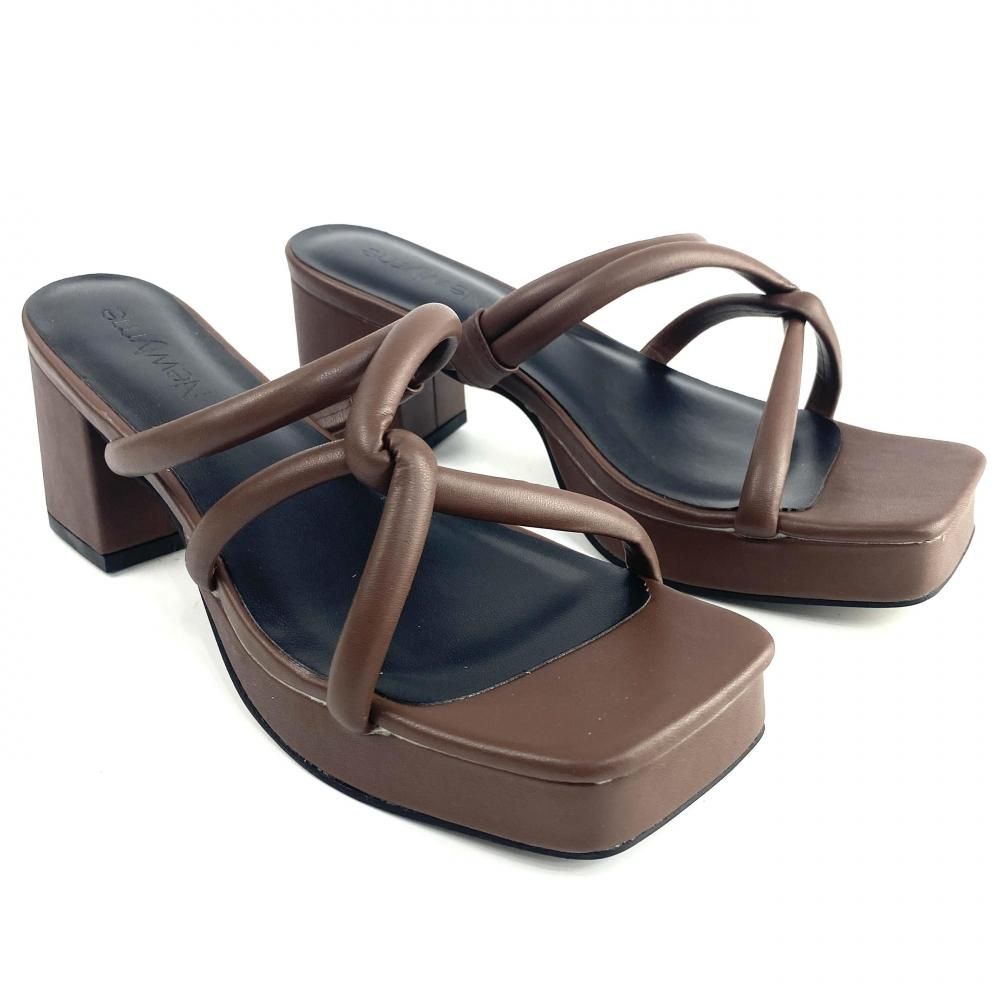スクエアトゥツイストストラップサンダル ブラウン 25cm B1961